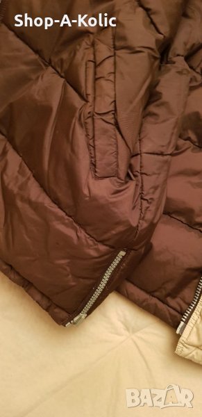 Оригинална мъжка пухенка, двулицева, от Tom Tailor. Якето има скрита качулка, двулицево е-кафяво и ванилия/бежово. Ципът се закопчава и откопчава без проблеми, но му липсва дръжката и може да се наложи намеса на шивач, обущар за поставяне на дръжка на самата машинка. По визия и състояние няма никакви други забележки. Пух! Перфектно за сезона! Размер: XXL. Моля, последвайте ни и в Instagram: shop_a_kolic.