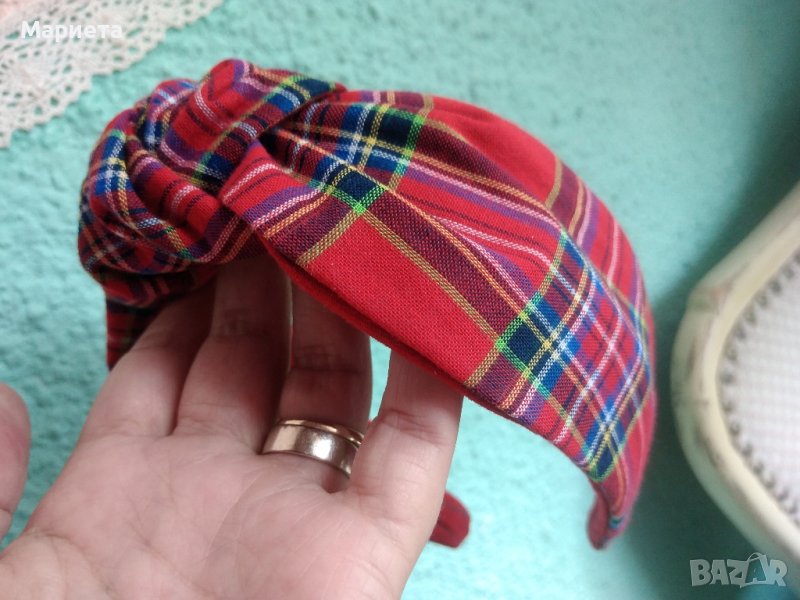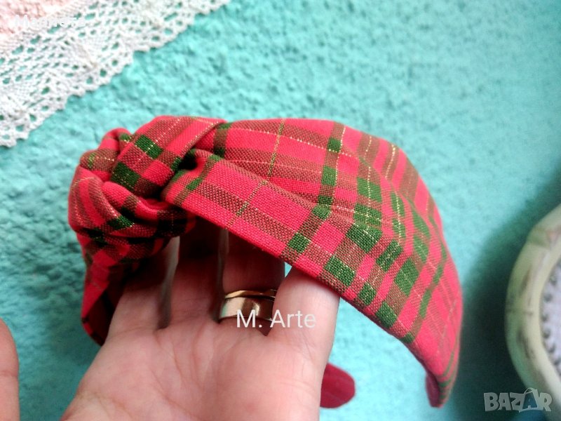 диадема червено каре с възел Ръчна изработка Коледна Диадема Каре Шотландско каре → Обява 35154805