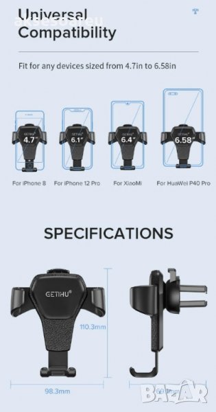 С гумирани щипки захваща здраво и не драска пластмасата на вашата кола. Има и гумиран гръб който контактува с въздуховода за парното без да го надрасква и поврежда.