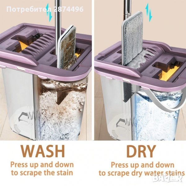 Основното качество на този моп е малкият размер на кофата. Това е малко, разделено на 2 вани. Мопът винаги се измива във ваната с чиста вода. При изстискване мръсната вода се оттича във ваната с мръсна вода. Поради тази причина кофата е малка, без да е необходимо да измивате мопа в по-голям контейнер (водата винаги е чиста), така че можете да съхранявате кофата навсякъде, без да изглеждате зле или без да заемате твърде много място в дома си .