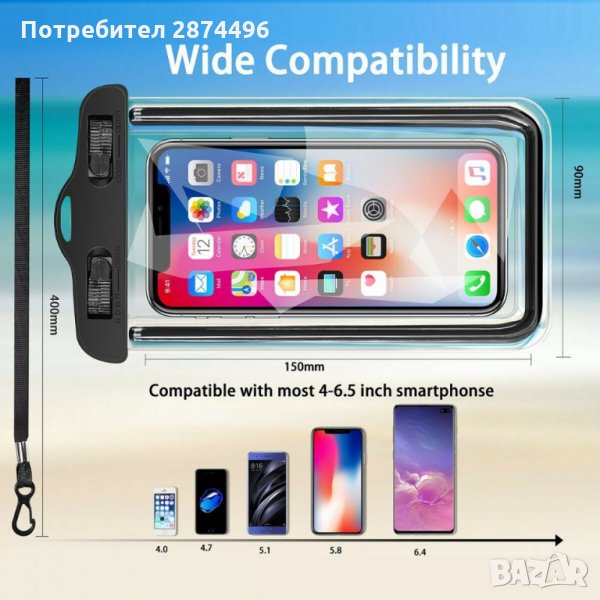 Също така ще можете да вземете телефона със себе си във водата и да запечатате водните спомени от лятото, а благодарение на здравия материал, от който е изработен калъфът и сигурния начин на затваряне, ще сте спокойни за безопасността на телефона си. ○ Подходящ за всички устройства с размери до 150х80mm ○ Затваря се бързо с механизъм ○ Прозрачна слюда, през която се оперира по дисплея на телефона