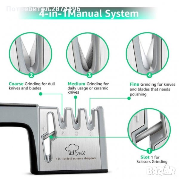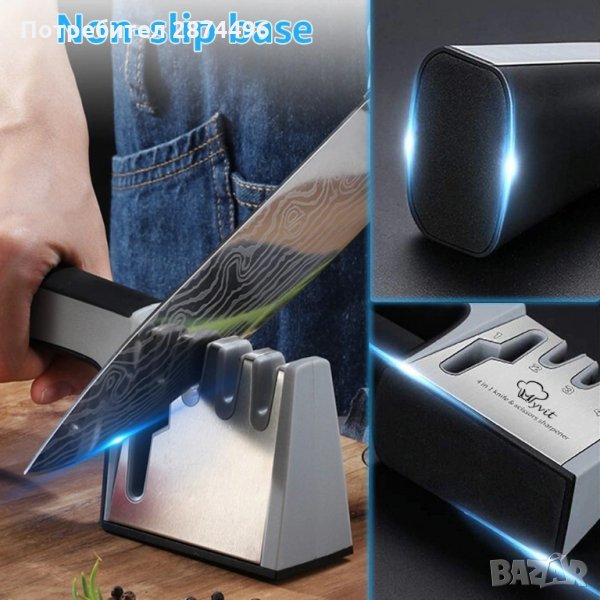 Универсално и професионално точило за ножове, ножици, сатъри. Основен и важен аксесоар за всяка кухня! Уникален и патентован компактен уред за заточване, който удължава живота на вашите ножове и ножици, като ги оставя силно заточени, като нови.