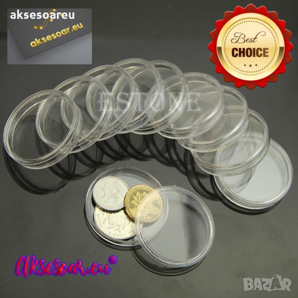 10 бр. Напълно прозрачни пластмасови клипси калъфи капачки, капсули, кутийки, легла за монети различ