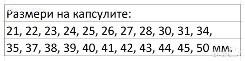 Размери на капсулите: 21, 22, 23, 24, 25,