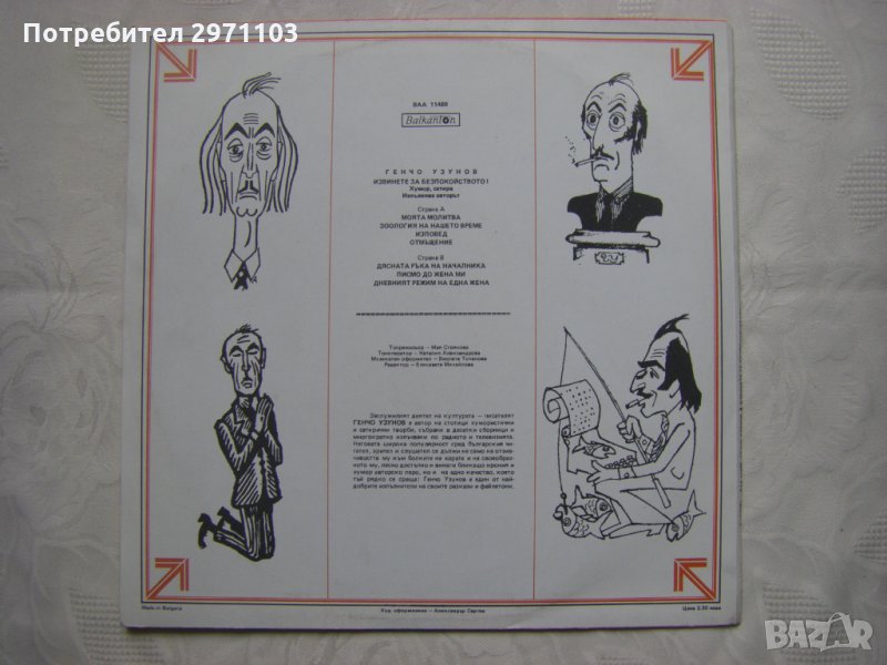 Грамофонна плоча - ВАА 11489 - Генчо Узунов. Извинете за безпокойството !: хумор и сатира; изпълнява авторът