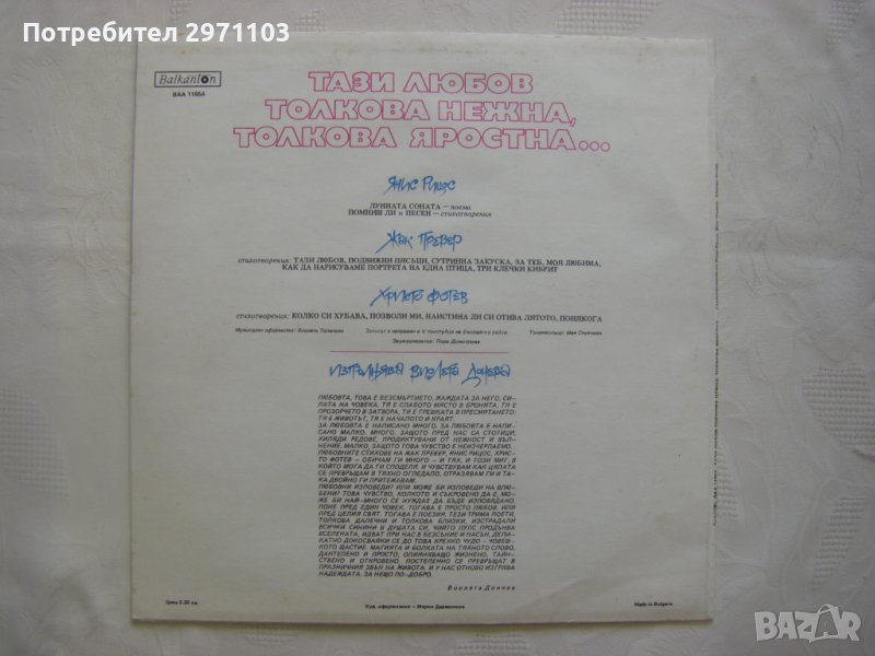Грамофонна плоча - ВАА 11654 - Виолета Донева.Тази любов толкова нежна, толкова яростна