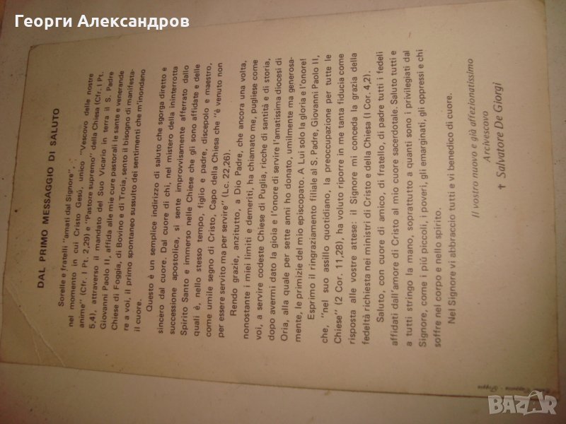 РИМО - КАТОЛИЧЕСКИ МИТРОПОЛИТ ЕПИСКОП Стара ИТАЛИАНСКА КАРТИЧКА ВАТИКАНА с ДОКУМЕНТ → Обява 35160329