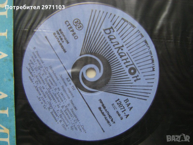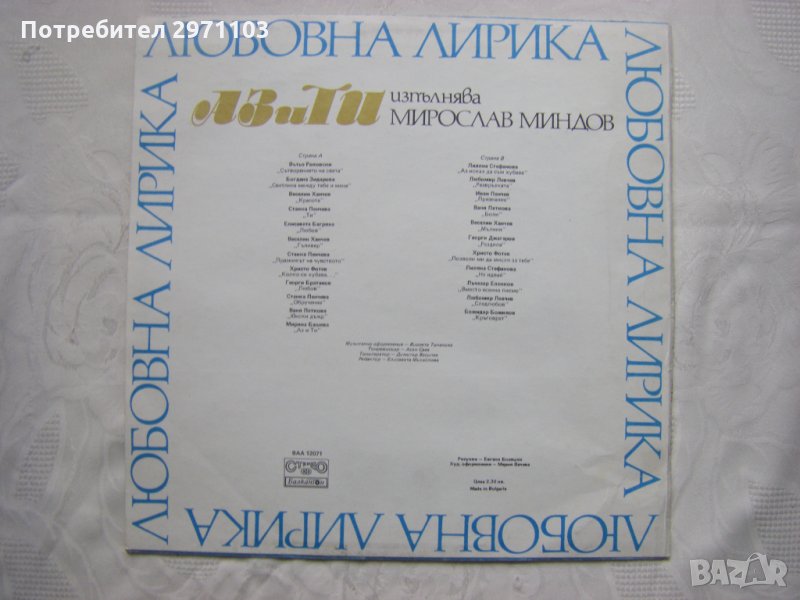 Грамофонна плоча - ВАА 12071 - Аз и ти. Любовна лирика. Изпълнява Мирослав Миндов