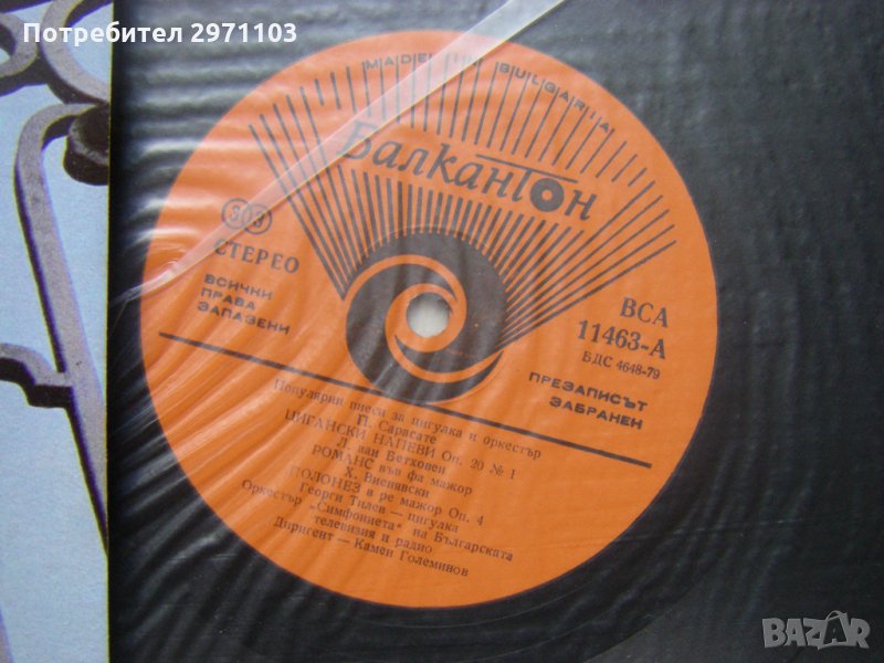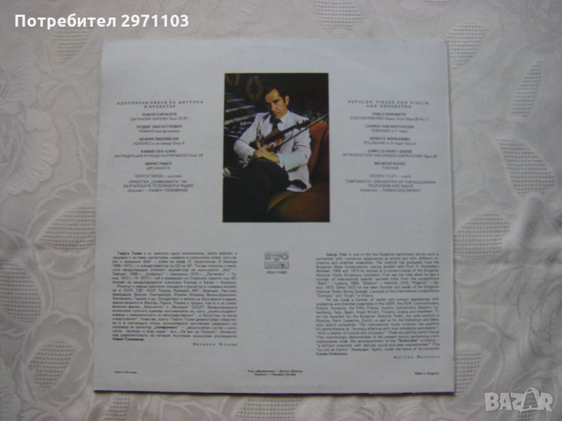 Грамофонна плоча - ВСА 11463 - Популярни пиеси за цигулка и оркестър изпълнява Георги Тилев - цигулка, с оркестър "Симфониета" на Българската телевизия и радио, диригент Камен Големинов