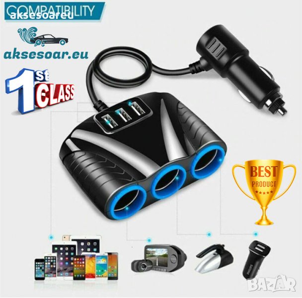 В кутията: 1 x 3 гнезда + 3 USB сплитер за запалка