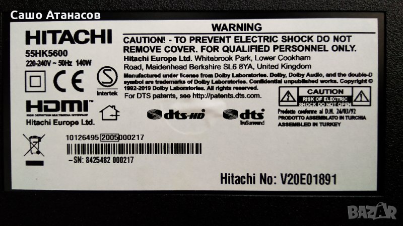 HITACHI 55HK5600 със счупена матрица (панел VES550QNDS-2D-N41 )