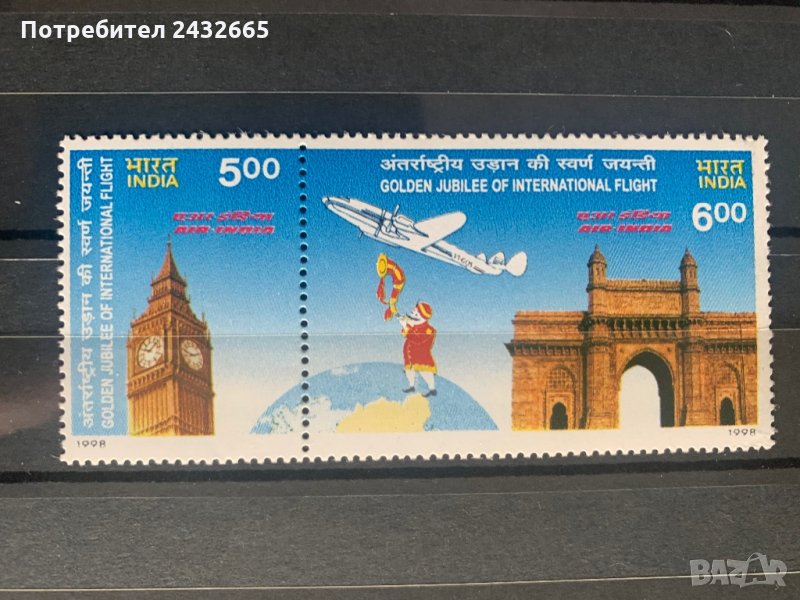 830. Индия 1998 = “ Транспорт. Авиация. 50г. от първия межд. полет на Air India ” , **, MNH