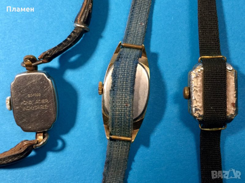 Три дамски позлатени часовника,Заря,Лъч-16 камъка.Nakar швейцарски. Цената на руските е 55 лв за брой а за швейцарския 65 лв.Работещи, но се нуждат от малко профилактика.При интерес пишете ми.