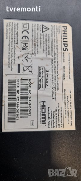 POWER BOARD ,715G6863-P01-001-002M,for PHILIPS 24PHH4000 Борда е гарантирано работещ Демонтиран от телевизор PHILIPS модел 24PHH4000 със счупен дисплей TPM236WH2-WHBN00.K Rev.5944 тествана от нашия техник