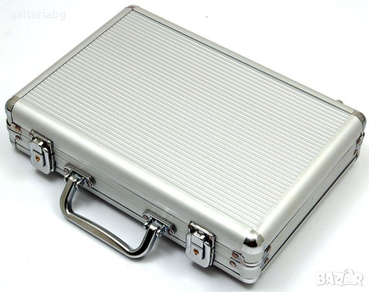 Комплект 200бр. чипове за американски покер с две тестета карти с поставка и 5бр. зарове.