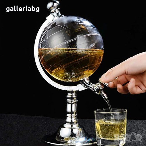 Прозрачен диспенсър за напитки с кранче във формата на глобус.