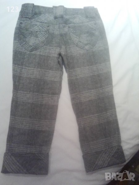 Модерен елегантен вълнен панталон 7/8-ми, позволяващ да е се разгъне крачола, за да стане и по-дълъг, в зависимост от това до каква степен да се вижда обувката. Цветът е по-скоро като на снимка 1. Не е с дълбока талия, а по-ниска, но не много… Размер на ханш (78 см), талия (93 см), от четала до края на панталона в сгънато състояние (55 см ) и разгънато (62 см), а цялата дължина на крачола от горе около (75 см) на (81 см).
