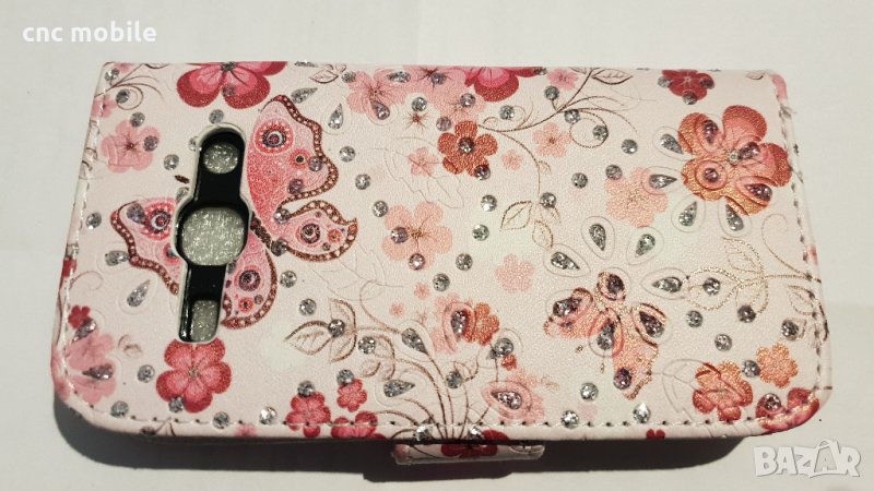 Кожен калъф тип тефтер с цветя и пеперуди - 5€ .