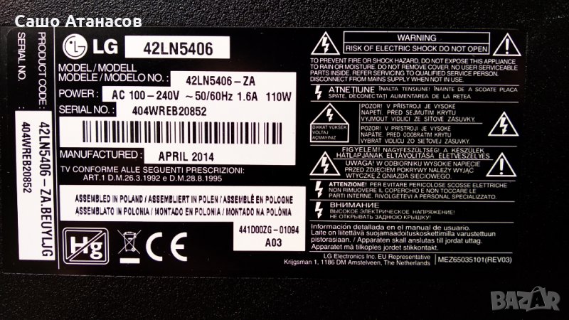 Захранване: EAX64905301(2.4) / LGP42-13PL1 - 50лв.
