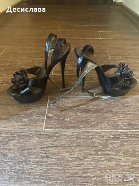 Обувките са без забележки. Ефектни са. Закопчават се на глезена. Цветето е от кафяво кадифе, а останалата част е от лак.