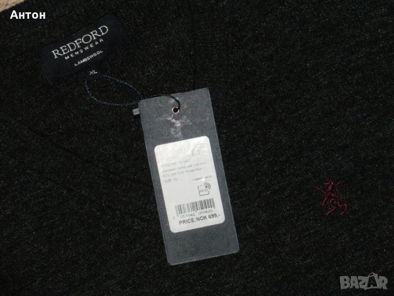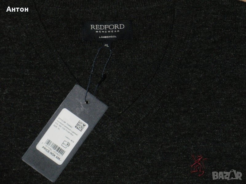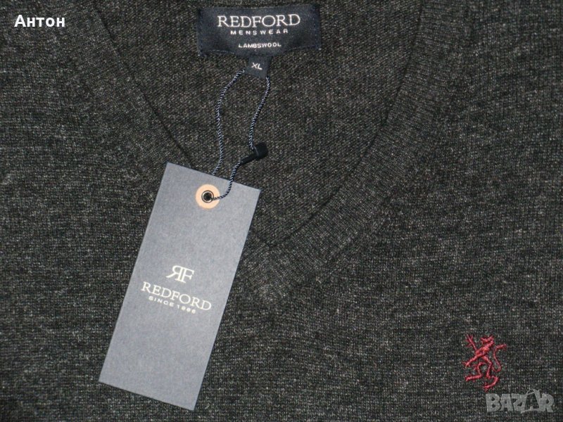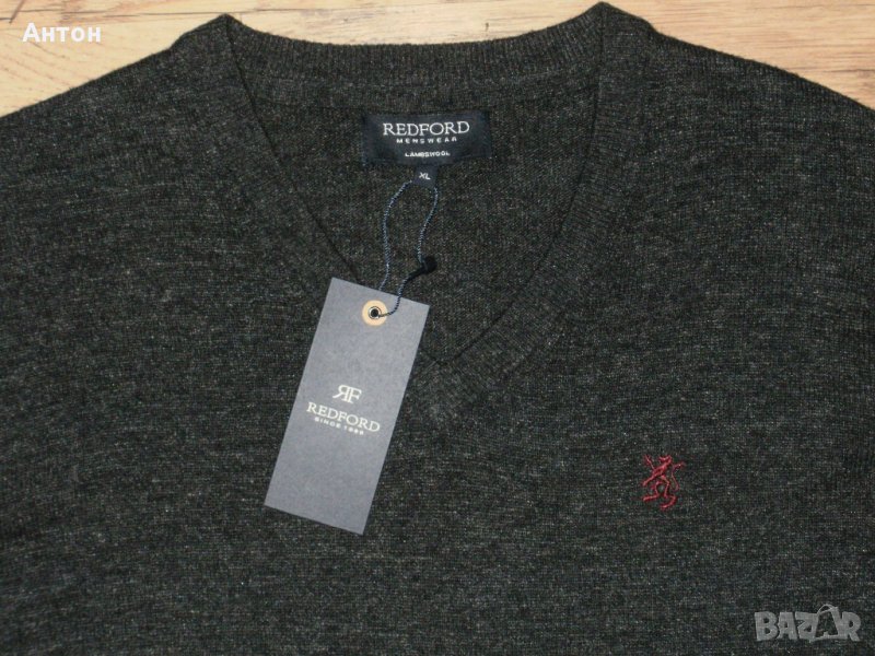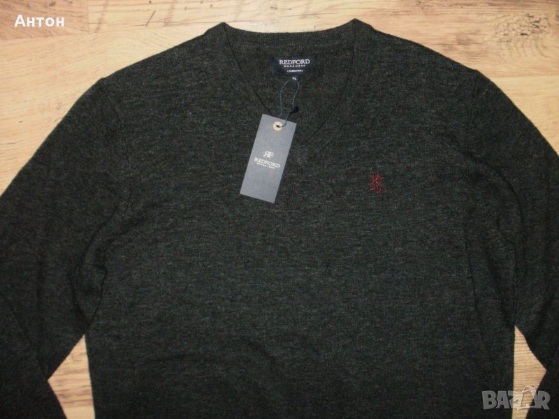 Пуловера е на REDFORD, нов с етикет. По номер е XL. Цвета е като на снимките, сиво леко меланж. Материята е 80% вълна. Има лого отпред.