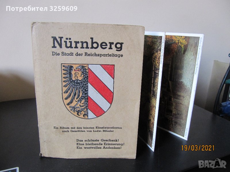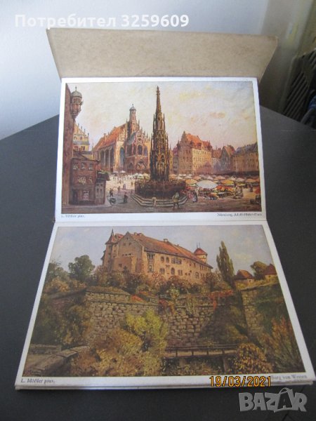 НЮРНБЕРГ, градът на партийните конгреси на Райха - комплект /тип хармоника/ от 8 бр. художествени картички /репродукции от картини на Лудв. Мьослер/.