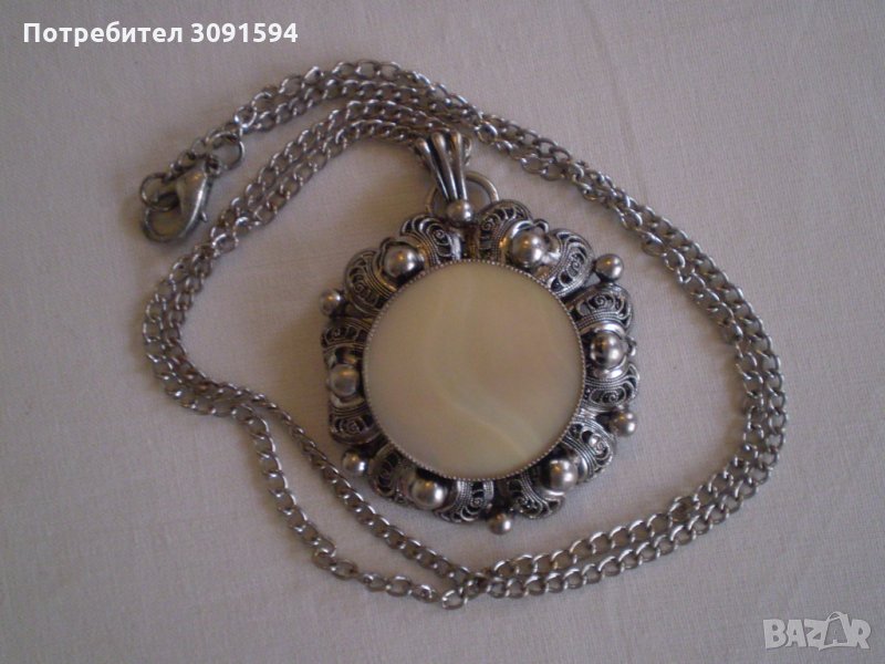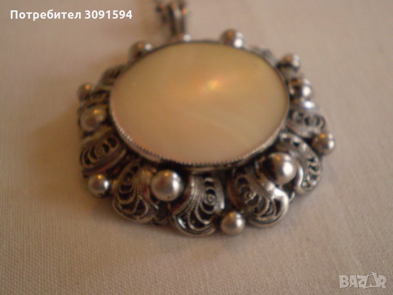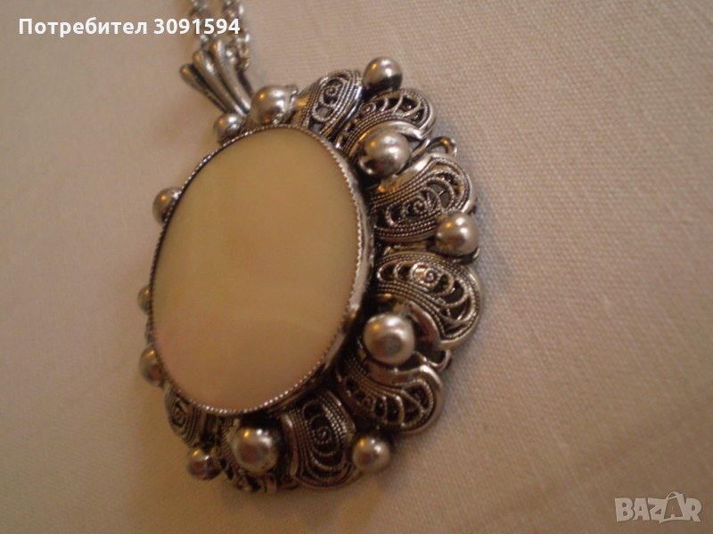 Ретро медальон седеф с бял обков филигран → Обява 35182563