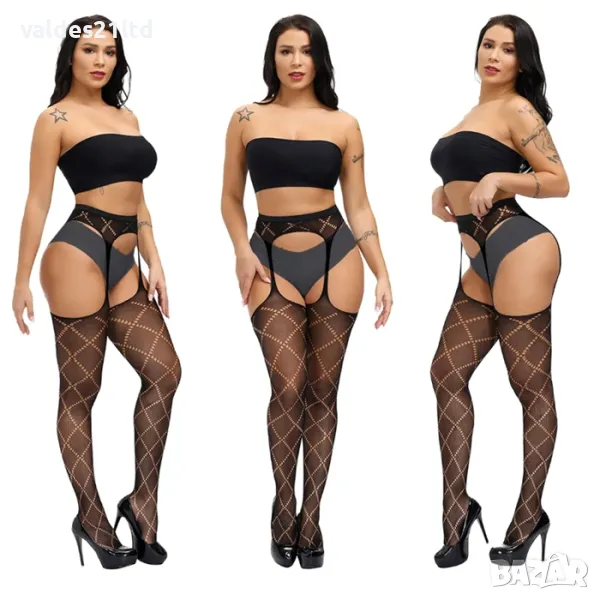 Стилен и секси аксесоар, който комбинира класическия дизайн на чорапогащника с визията на жартиери. Имитира външния вид на класически чорапи с жартиери, но без нуждата от допълнителни колани и закопчалки.