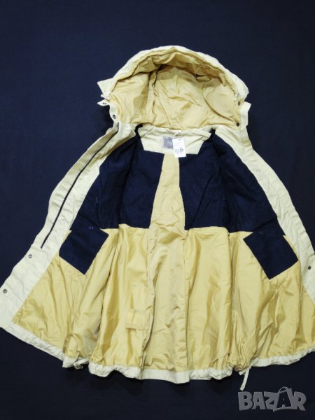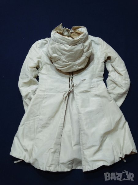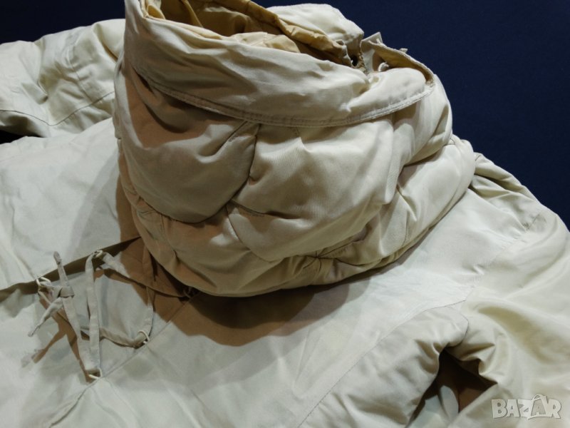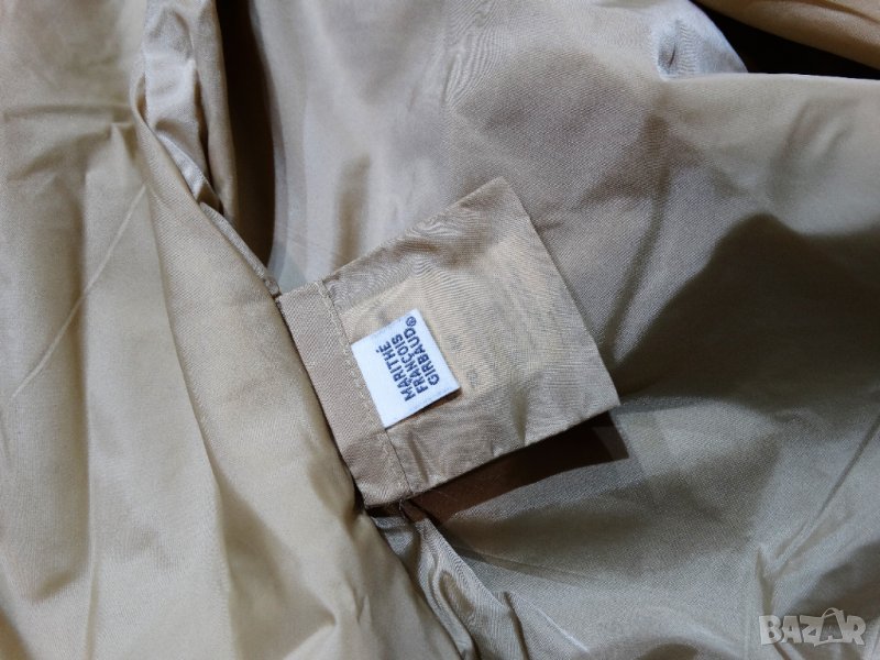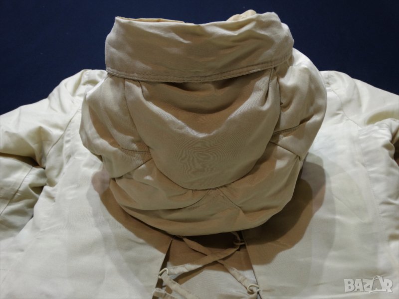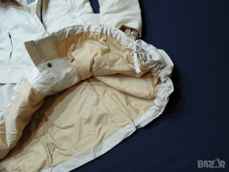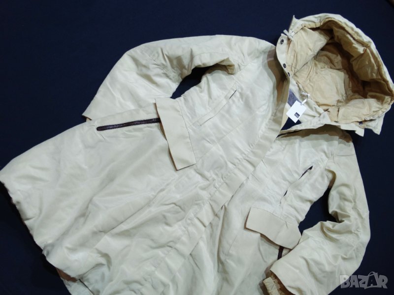 Ново и намалено от 550лв на 450лв дамско яке габардин + гъши пух, цвят бежов с красива качулка. По етикет е размер XL, но по-добре би седяло на дама с размер L, вталено, 6 външни джоба и 2 вътрешни, опция за стягане отдолу. Дължина 86см,рамена 41, подмишници 48-52см, талия46-54 (отзад може да се регулира широчината), най-долу без ба е стегнато 58см. Състава се вижда на снимката с етикета.Може да има лек коментар на цената, ако се интересувате от якето!