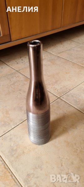 Керамична сребриста ваза за украса, ръчна изработка. В - 29см, Д - 6,5см.