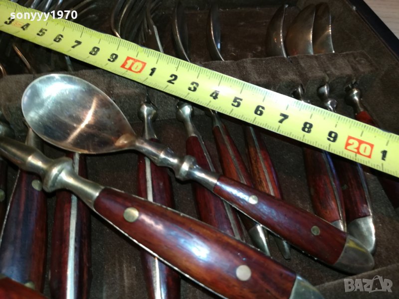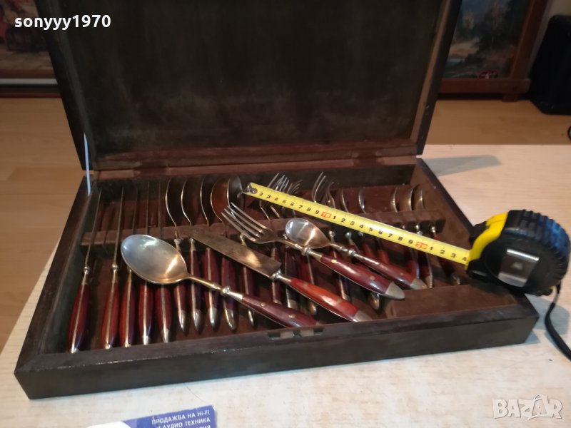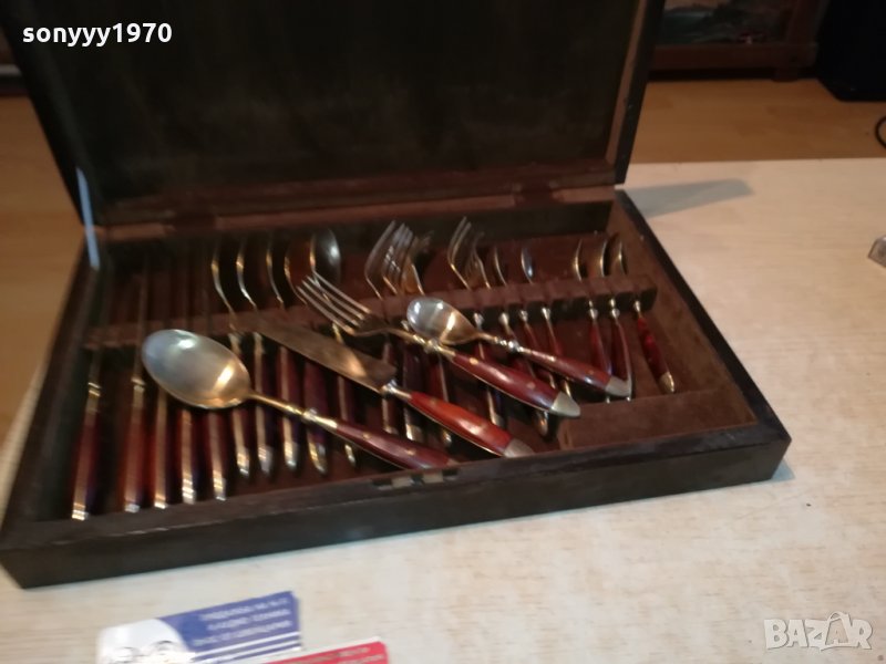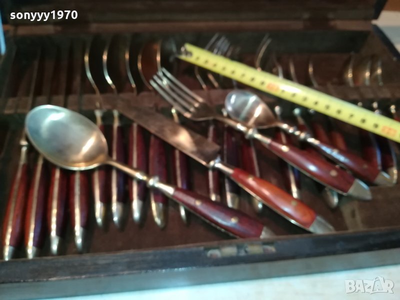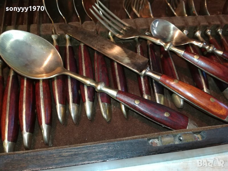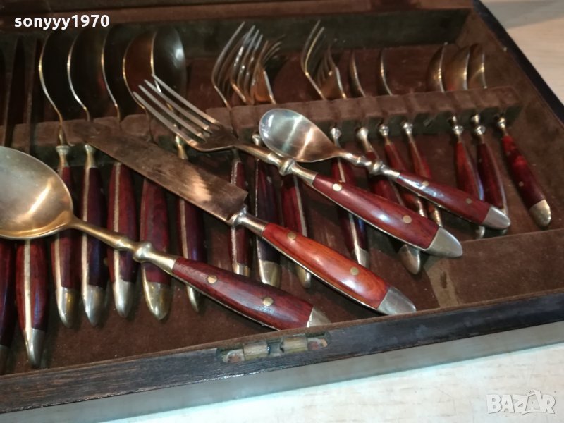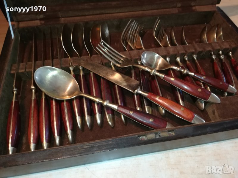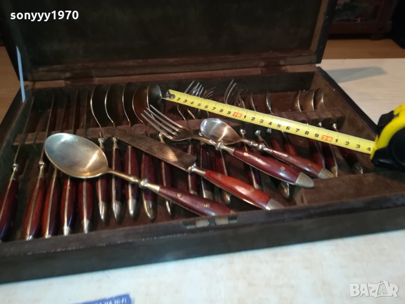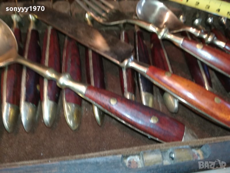 ROYAL-КОМПЛЕКТ ПРИБОРИ ЗА ХРАНЕНЕ-ВНОС ФРАНЦИЯ-СТАРИ АНТИЧНИ НОВ ВНОС-КОЛЕКЦИОНЕРСКИ ЗА КОЛЕКЦИЯ ИЛИ ПОЛЗВАНЕ-ДЪРВО И МЕД МЕСИНГ В ЦВЯТ ЗЛАТО-В ДЪРВЕН КУФАР С КАДИФЕНА ВЪТРЕШНОСТ С РАЗМЕРИ-40Х25Х6СМ-пращаме със спиди или еконт с преглед и тест след превод на капаро за куриерската услуга поради зачестили некоректни потребители-поръчки само тук в саита! по телефона и със смс не! краини цени! бартери не правиме! ПАРИ НЕ ВРЪЩАМЕ! всеки ден нови неща-още 2-3 наши обяви тук