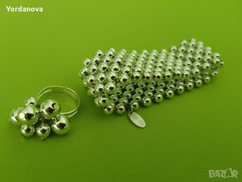 Нови, неизползвани гривна и пръстен в сребристо. Гривната се разтяга, пръстенът се регулира. За размерите може да се ориентирате по-подробно от снимките.
