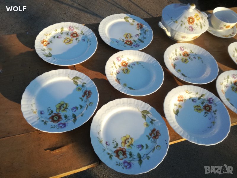 Продавам Видно на снимките тоя страхотен порцеланов сервиз изрисуван с цветя на Бавария,сервизът се състои от 11части 4бр дълбоки чинии 2.5см за супа с диаметър 22см,4бр плитки чини за второ 2см с диаметър 2см,1бр плато за салата разни 2.5см с размер 32см на 21см,1бр супник висок до капак 16.5см бе за капак 8.5см диаметър на отвора 19.5см дължина от дръжка до дръжка 26.5см побира 2л течност,и един брой сосиера висока 8см отвор от горе диаметър 12см от долу диаметър 12см побира 300милилитра теч,сервиза е изключително добре запазен и много красив съвсрм скоро внесен от германия,идеален за подарък както и да си го позволите да посрещате гости през празничните дни.Моля разгледайте и другите ми обяви