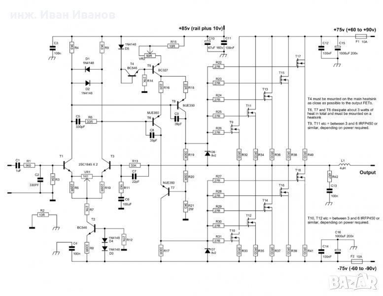 600 Watt Quasi Amplifier With Mosfet IRFP460 electronic circuit and schematic