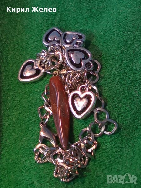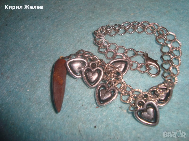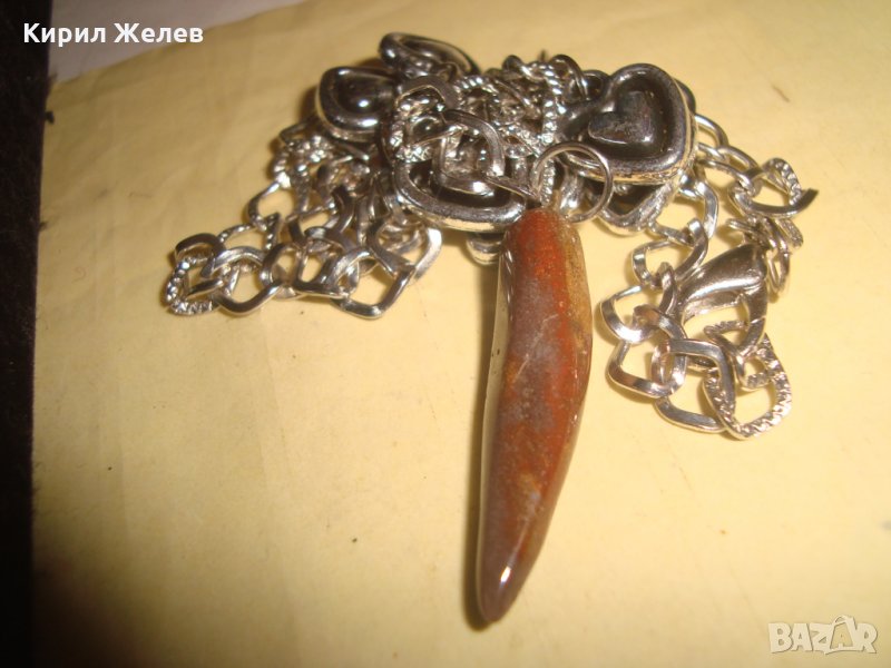 СРЕБРИСТА АРТ ГРИВНИЧКА с ВИСУЛКИ СЪРЧИЦА и НАТУРАЛЕН ПОЛУСКЪПОЦЕНЕН КАМЪК МИНЕРАЛ ХАЛЦЕДОН 9328