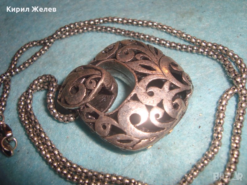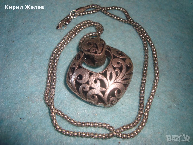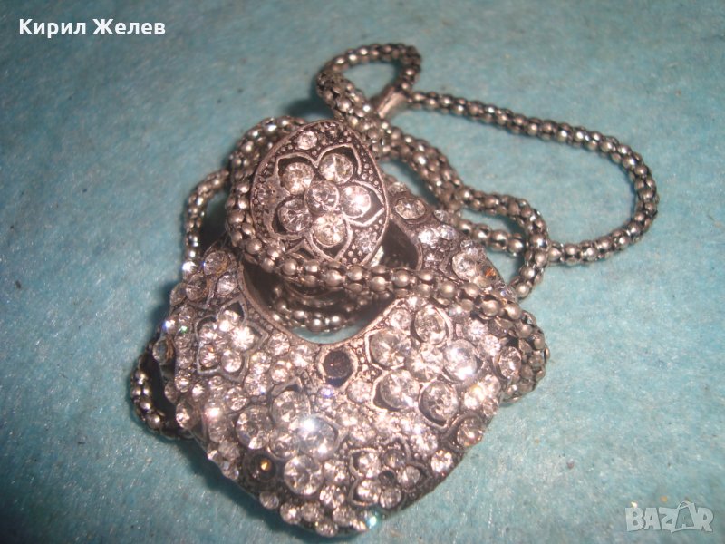 ПОСРЕБРЕН ФЛОРАЛЕН АЖУРНА АРТ ИЗРАБОТКА БЕЛ ЕПОК СТИЛ МЕДАЛЬОН с ЦИРКОНИ 3267