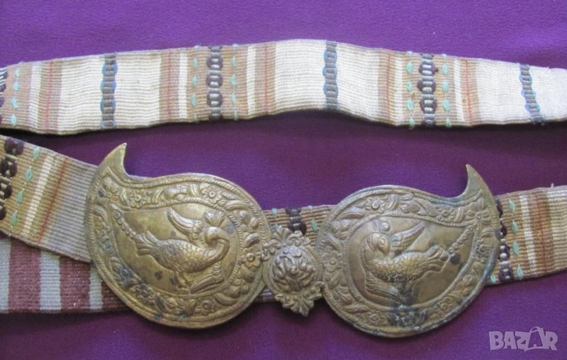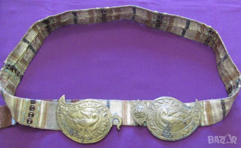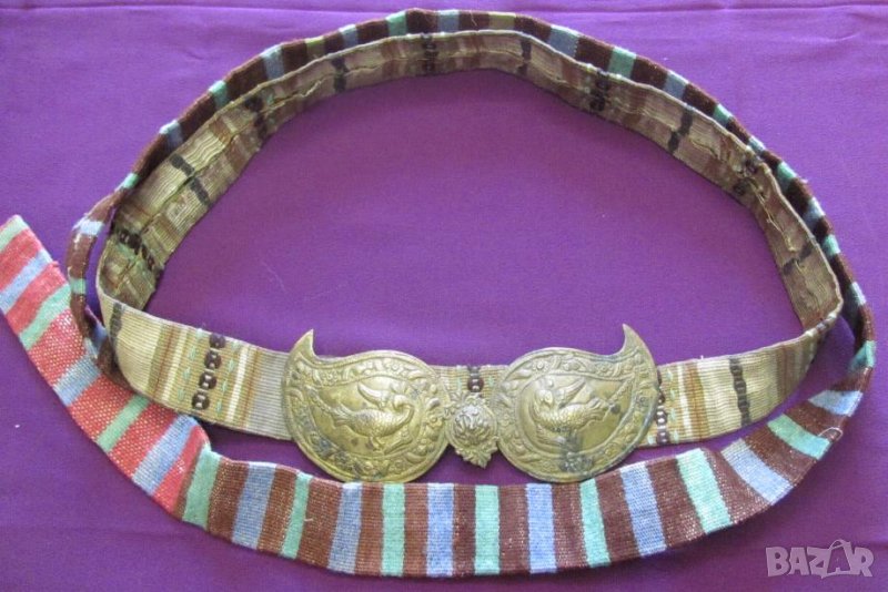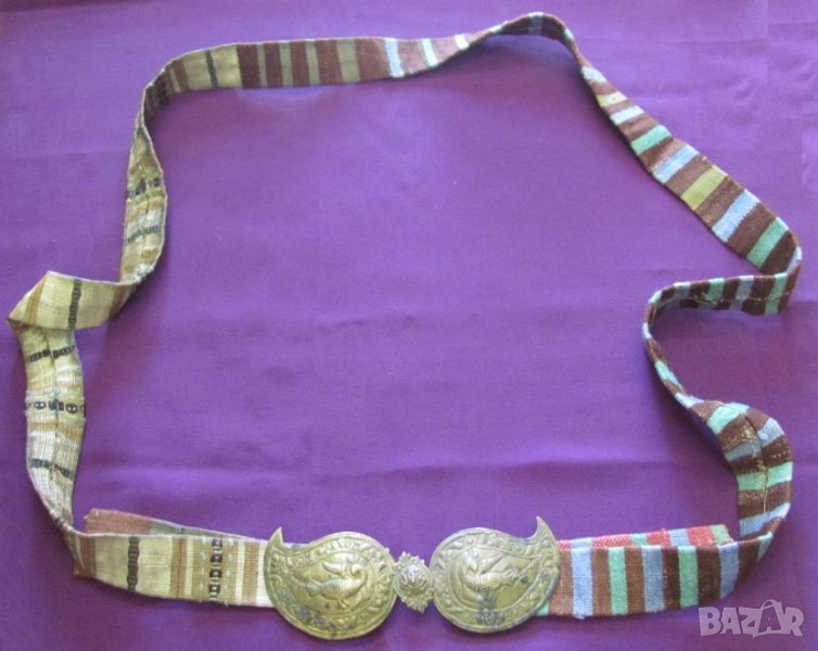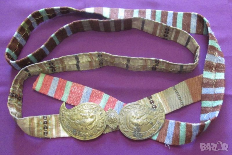 Златна сърма. Колана не е монтиран към пафтите и може да се използва за всеки размер талия. И пафтите и колана са автентични.