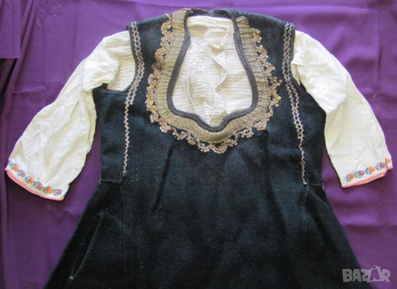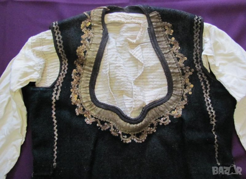Изработен е от дебел вълнен ръчно тъкан плат и бродиран с финни стъклени мъниста.