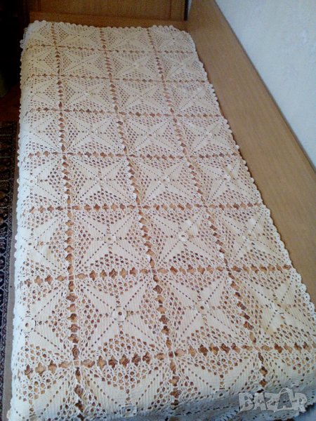 Красиви и стилни плетива на една кука -за единично легло, квадратна маса, салфетки, тишлайфери и милиьота.1. Покривка кувертюра за легло, маса или перде. Дължина 2.50м и широчина 1.00м. Налични - 1 брой. Цена 120лв.