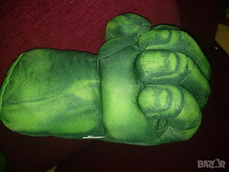 Комплект меки ръкавици на Хълк. Размера е един, стават за малки и големи. Големина на ръкавица е около 25-27см. Цена-15,50€. Вътре е монтирана и дръжка, която се хваща от детенце за да не се изплъзва. Ако искате 1 бр. цената е 7,90€. Доставка с Еконт или лично за Сф.