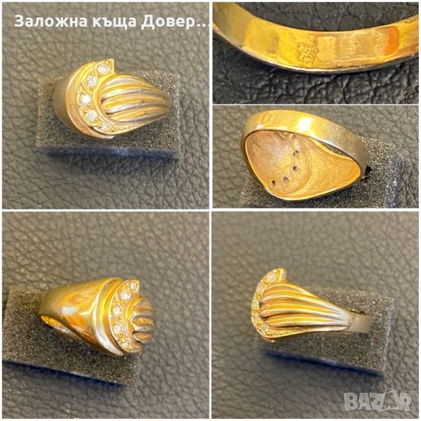 Пръстен с кристали-масивен изработен от 14 каратово злато с проба 585 и печат.Перфектно състояние. Никакви забележки,без следи от носене.Почистен и полиран в професионално златарско ателие и покрива всички изисквания за чисто ново изделие.Издаваме сертификат.