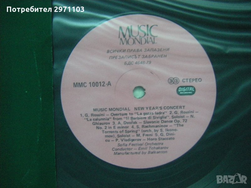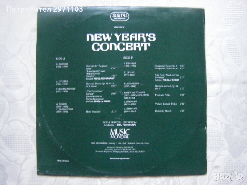 Грамофонна плоча - ММС 10012 - Emil Tchakarov, Mirella Freni, Nicolai Ghiaurov, Nicolai Gedda – New Year's Concert '88 - издание на Балкантон с много високо качество на звука !!!