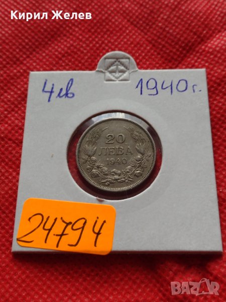 Монета 20 лева 1940г. Царство България за колекция декорация - 24794 → Обява 35206443