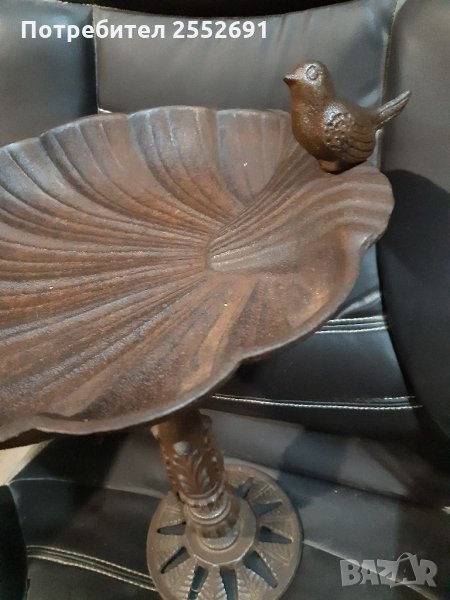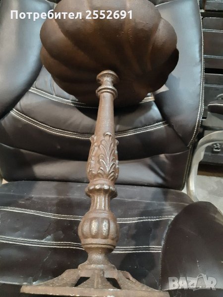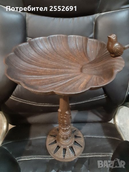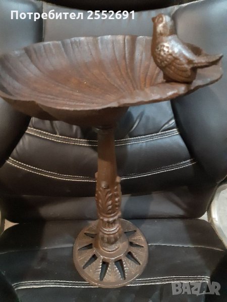 Масивна,старинна, чугунена поставка с птица. Височина-47см Горен диаметър-28см. Долен диаметър-16,5см.