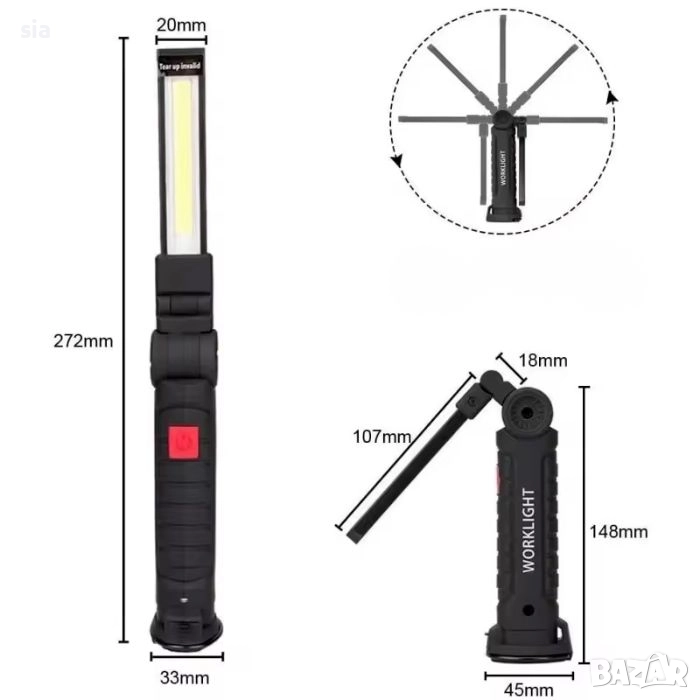 Вграден магнит в основата – идеална за ремонтни дейности, автомобилна работа и домашна употреба