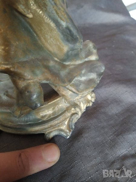 стар фигуративен свещник арт деко от метал.следи от позлатяване по фигурата.има забележки.