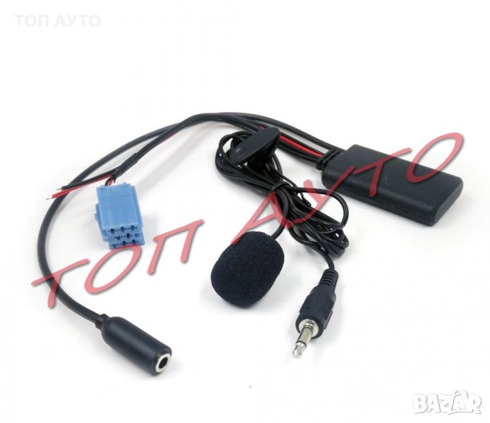 Модулът представлява Bluetooth, който се свързва към фабричната 8-пинова букса на радиото и се захранва от + през контакт и маса!