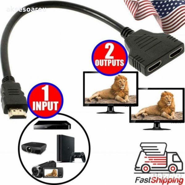 1 x HDMI мъжки към 2 HDMI женски 1 в 2