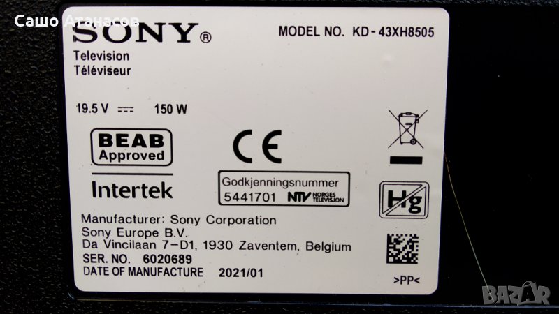 Модули от телевизор SONY KD-43XH8505 със счупена матрица (панел KD-43XH8505 CEI )