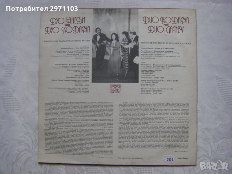 Грамофонна плоча - ВКА 11930 - Дуо Ганеви - пиано, дуо Кодама - пиано. Пиеси за две пиана от български автори